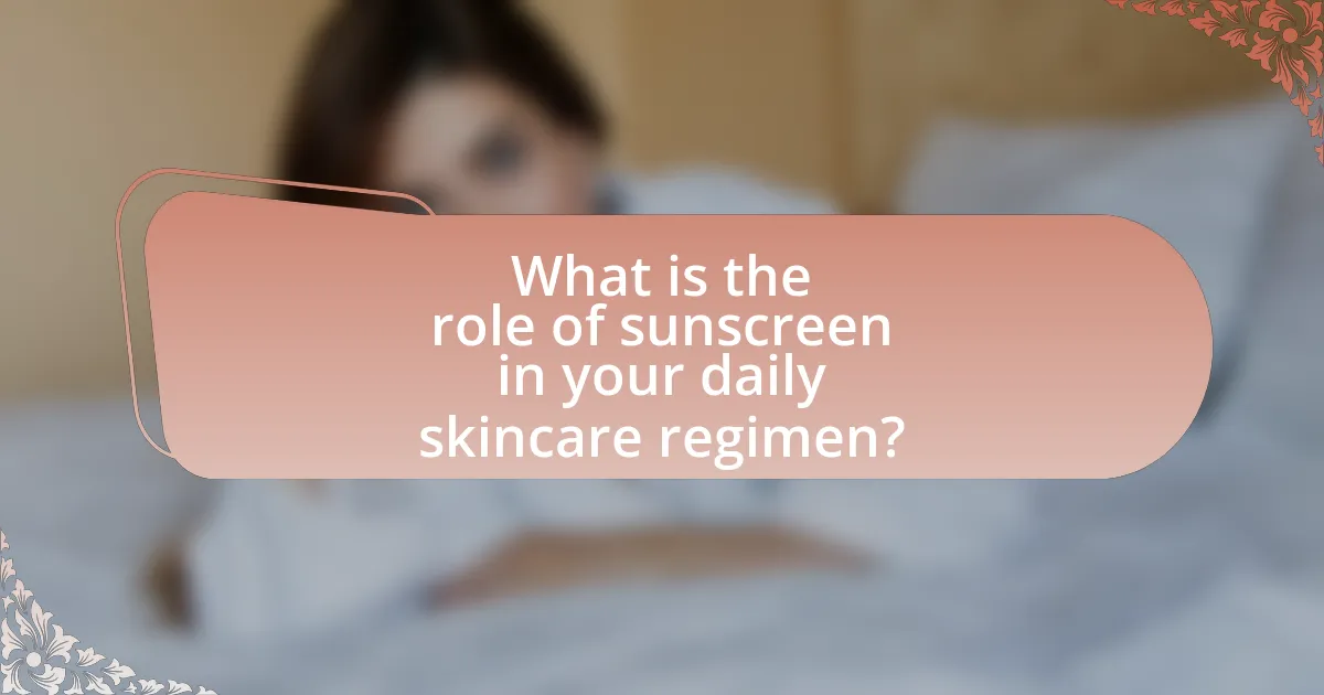 Sunscreen plays a vital role in daily skincare regimens by protecting the skin from harmful ultraviolet (UV) radiation, which can lead to skin cancer and premature aging. The article outlines how sunscreen functions by absorbing, reflecting, or scattering UV rays, and emphasizes the importance of using broad-spectrum products with an SPF of 30 or higher. It discusses the different types of UV radiation, the significance of formulation and application techniques, and the necessity of daily use to prevent long-term skin damage. Additionally, the article addresses common misconceptions about sunscreen and provides best practices for effective application and incorporation into skincare routines.